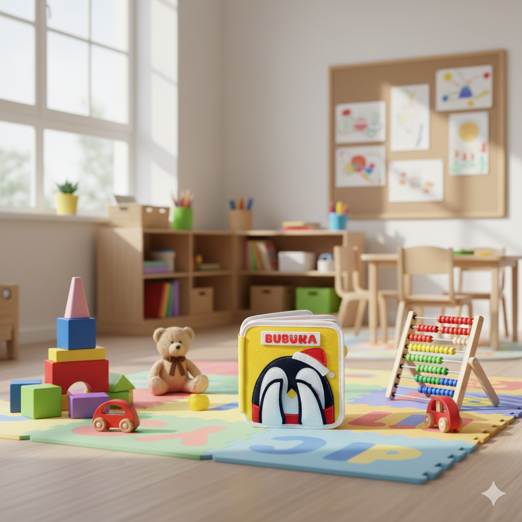 Esa primera idea creció, fue tomando forma entre pruebas, costuras y muchas ganas. Así nació BUBUKA: una marca pensada para padres que buscan algo distinto y para niños que aprenden tocando, mirando y jugando. Hoy seguimos creciendo contigo, libro a libro.